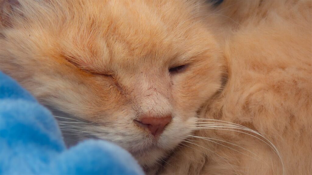 早速、枯れ葉を出して、バスタオルを入れた。そして、冬になって寒くなってきたので、妻がもう使わない冬用の厚での青い布団シーツを伏見から持ってきた。