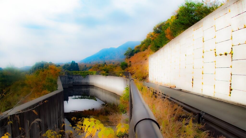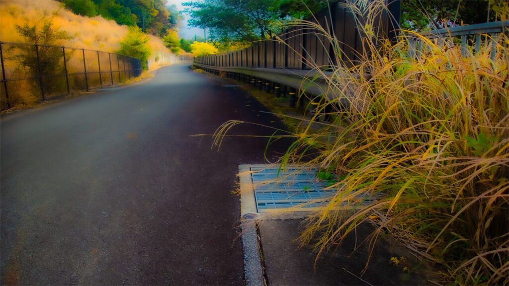 そして、その足もとに注がれる雨が、側道の側溝に集められ貯水池に流れ込むのだ。
