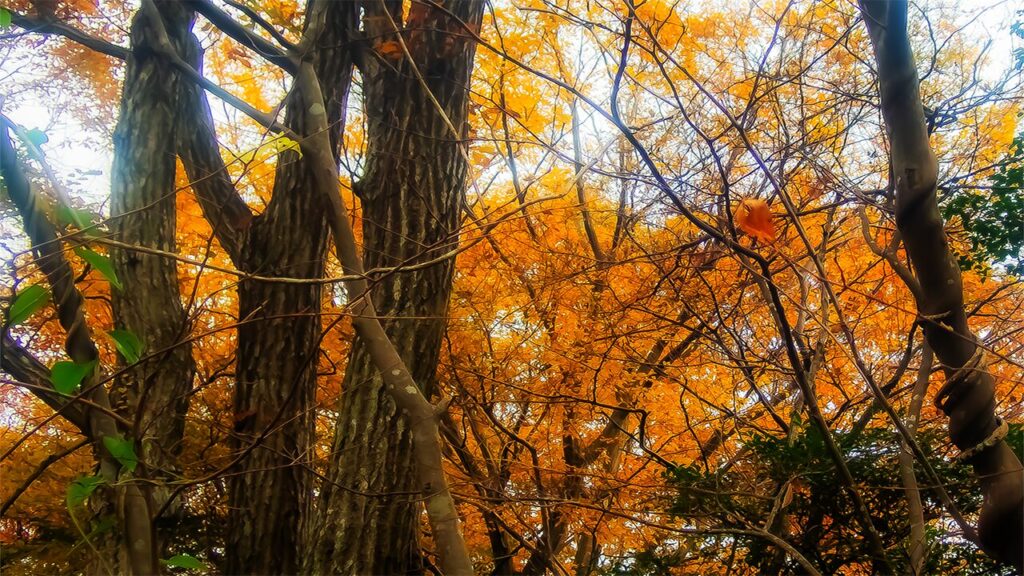 次に、強い風が吹いたらほとんどの葉っぱが飛び散る。そして冬になる。