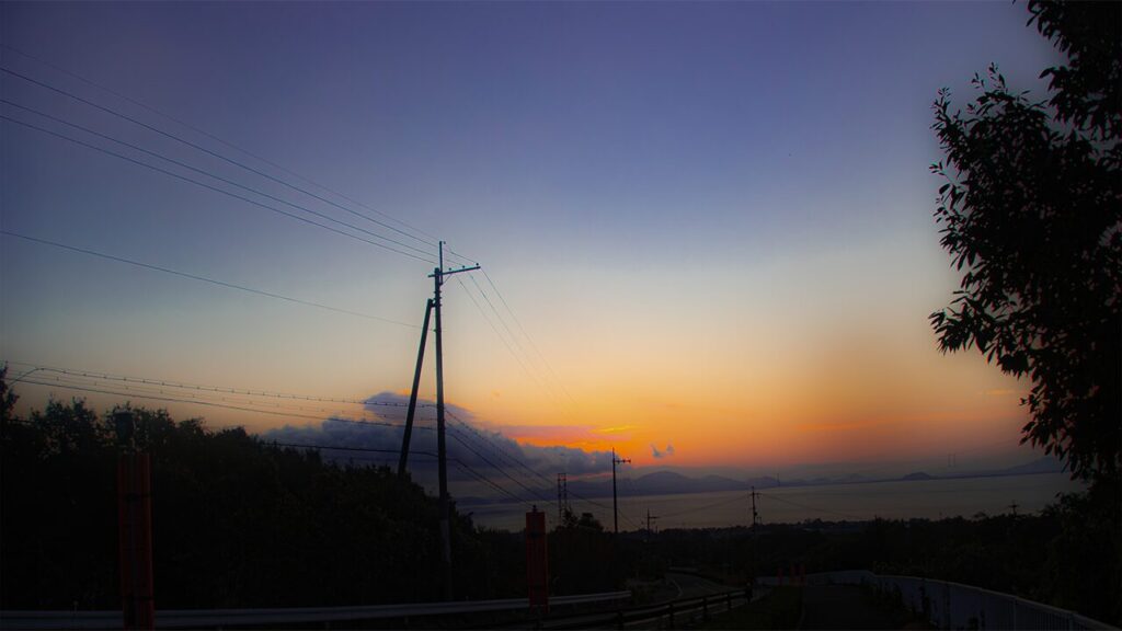 琵琶湖スポーツ大学方面、日が昇る。