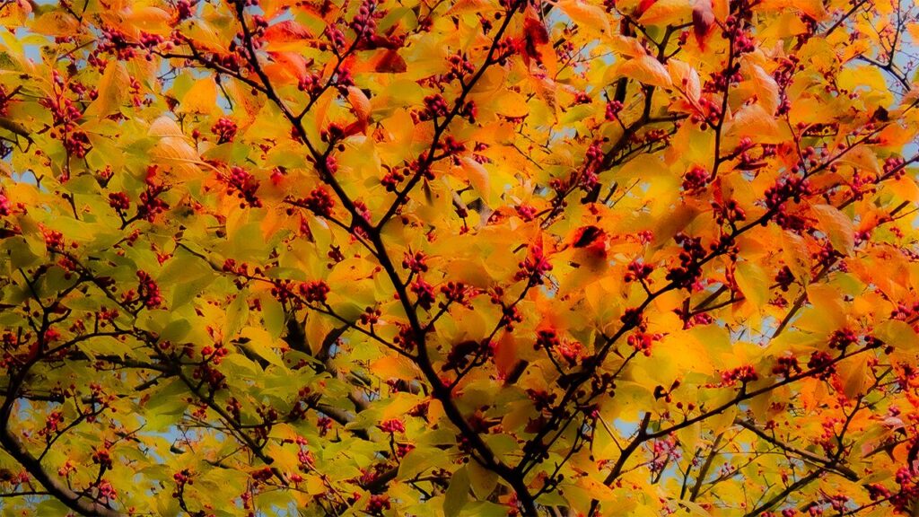 11月20日(木)から紅葉の記録を取り始めた。最終的に風が吹き、木枯らしとなる。葉が一気に吹き飛ぶ。できたらそのシーンも残したいのだ。穏やかな秋日和中の紅葉と、木枯らしで舞い散る最後。その総体を記録したいのだ。