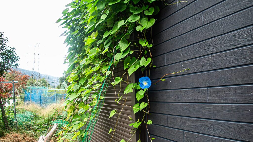 西洋朝顔、鹿の食害で全滅になりそうだった。2株植えて1株はダメだった。もう一株も枝が途中でちぎれた状態だった。夏場から少しずつ回復してきた。が…、次はカメムシがついた。何かおかしいと思ってよく見るとカメムシだらけだ。枝にびっしりついている。西洋朝顔は、チュウチュウ吸われて瀕死の状態だった。殺虫剤で対応した。もうダメかなと思った。その後また回復し花を咲かせた。綺麗なブルー。うれしかった。