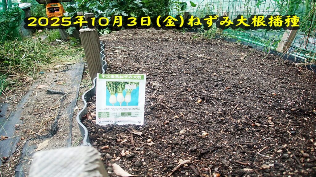 大根と聖護院カブの種を播いた。大根は大好きだ。が…。畑には小石が多い。今まで、大型ポットや袋を使ってきたが、大きいのができなかった。今年は畝に挑戦だ。先割れのセクシー大根だらけになるか心配だが、別に売り物ではないので…。