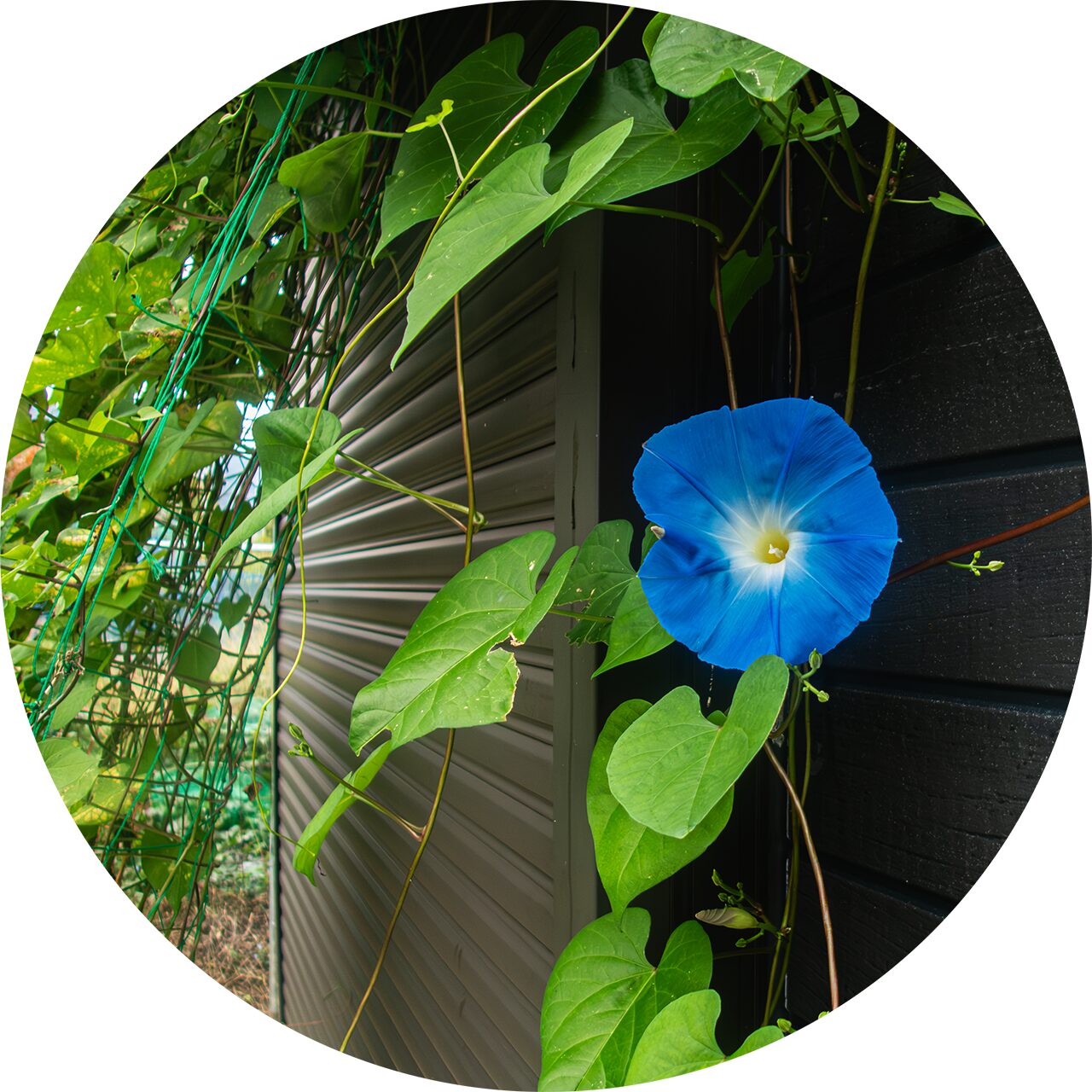 西洋朝顔、鹿の食害で全滅になりそうだった。2株植えて1株はダメだった。もう一株も枝が途中でちぎれた状態だった。夏場から少しずつ回復してきた。が…、次はカメムシがついた。何かおかしいと思ってよく見るとカメムシだらけだ。枝にびっしりついている。西洋朝顔は、チュウチュウ吸われて瀕死の状態だった。殺虫剤で対応した。もうダメかなと思った。その後また回復し花を咲かせた。綺麗なブルー。うれしかった。