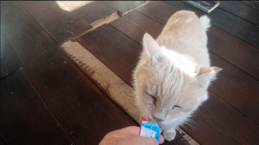 クリ子はん、すっかり懐いた。ウッドデッキで朝カーテンが開くのを外で待っている。チュールをもらったり、モミモミしてもらったり。最近は、デッキから部屋に入ってくる。チュール欲しさに入ってくるのだ。部屋の中をウロウロして興味深げに見ている。でも、長くはおらずスッと掃き出し窓からデッキに出て行く。寒い朝少しでも部屋にいれば良いのにと思うのだが…。